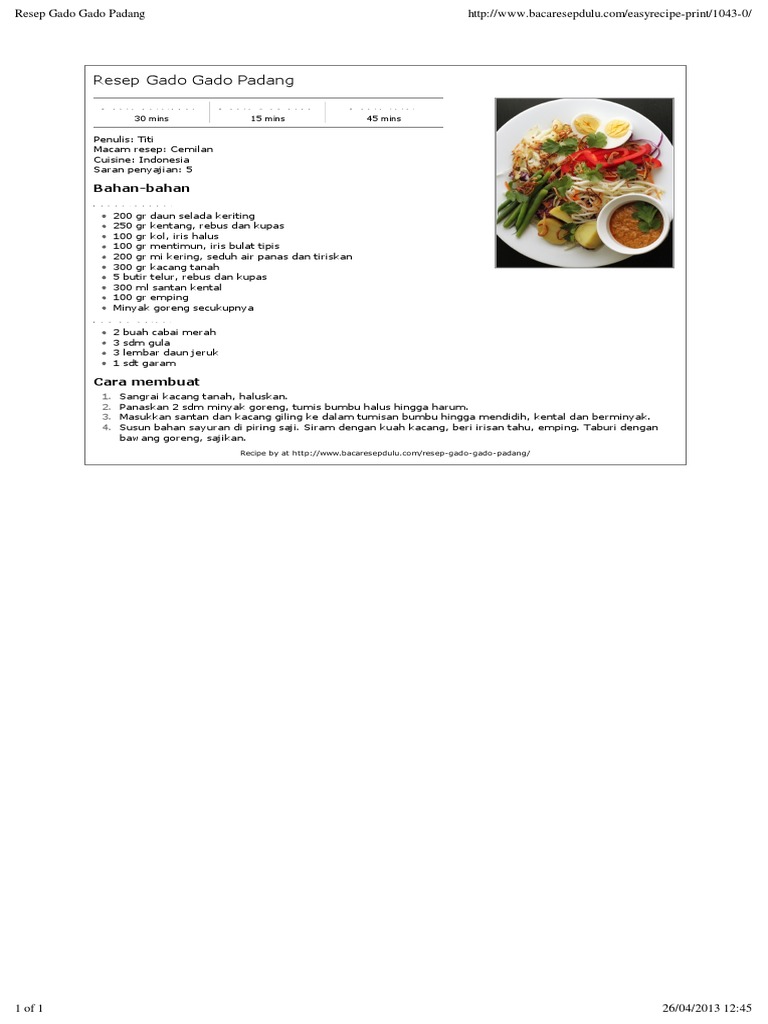 Resep Makanan By Rudy Dan Sahabat Gado Gado Indonesia