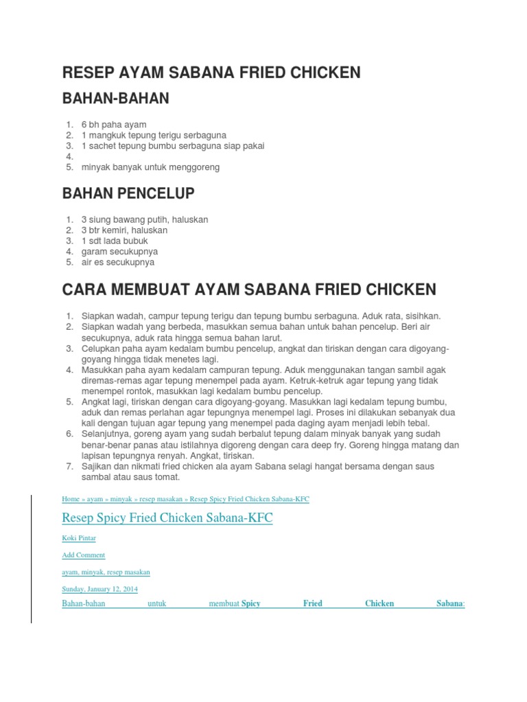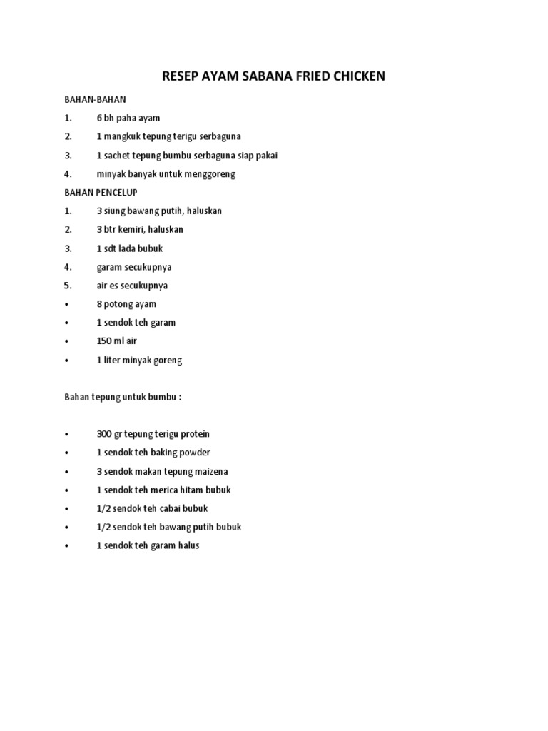 Resep Ayam Sabana Fried Chicken Docx
