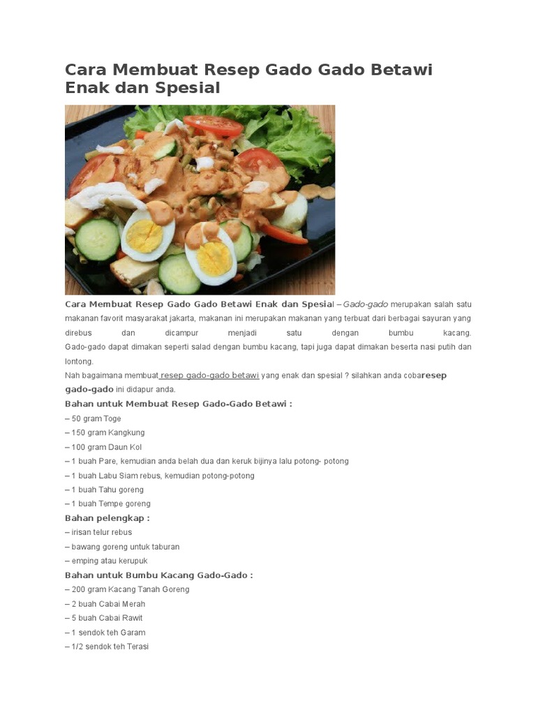 Cara Membuat Gado Gado Betawi Yang Enak Kaskus