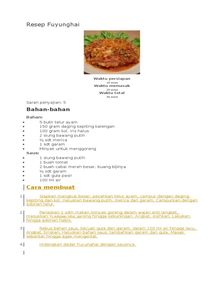 Resep Fuyunghai By Dianayupuspitasari Resep Tina